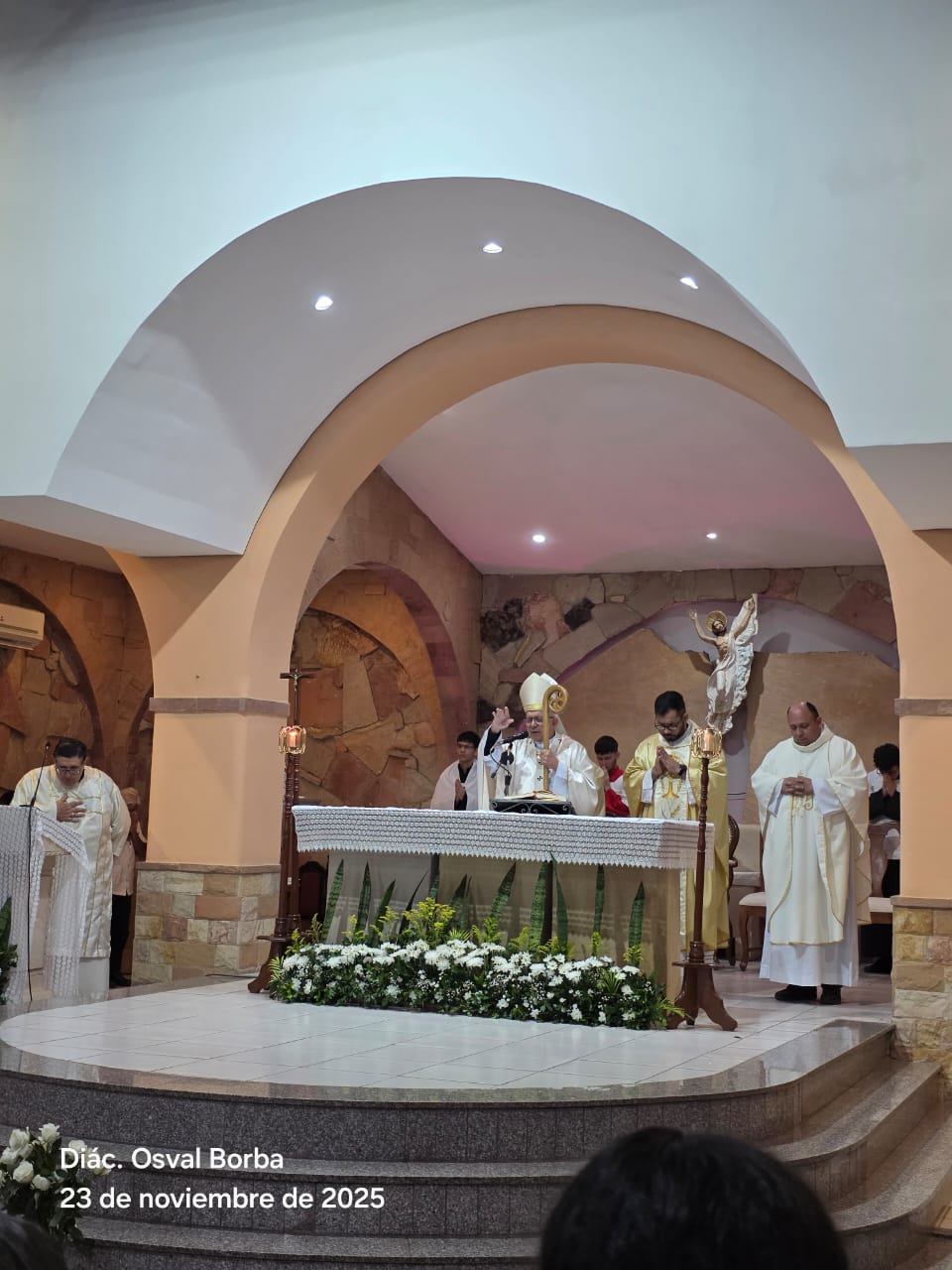 Queridos jóvenes, hoy ese mismo Espíritu Santo viene sobre ustedes. Él será su luz cuando se sientan confundidos, será su llave cuando se sientan perdidos, será su fuerza cuando caigan, será su consuelo cuando sufran. Y hoy, en esta fiesta de Cristo Rey, recordemos que aquel que una vez fue coronado con espinas, hoy desea ser coronado con algo infinitamente más hermoso: la corona de nuestra fe, de nuestra esperanza y de nuestra caridad. San Pablo decía a sus comunidades: “Ustedes son mi alegría y mi corona” (Flp 4,1), y también: “¿Cuál es nuestra esperanza o corona de gloria? ¿No lo son ustedes?” (1 Tes 2,19). Hoy ustedes están llamados a ser la corona viva de Cristo Rey: una corona hecha de amor, de servicio, de esperanza y de misericordia; una corona que perfuma al mundo con la fragancia del Evangelio; una corona que consuela, que ayuda, que levanta y que ilumina. Esta es la corona que Cristo espera de cada uno de ustedes: la corona de una vida vivida en el amor.