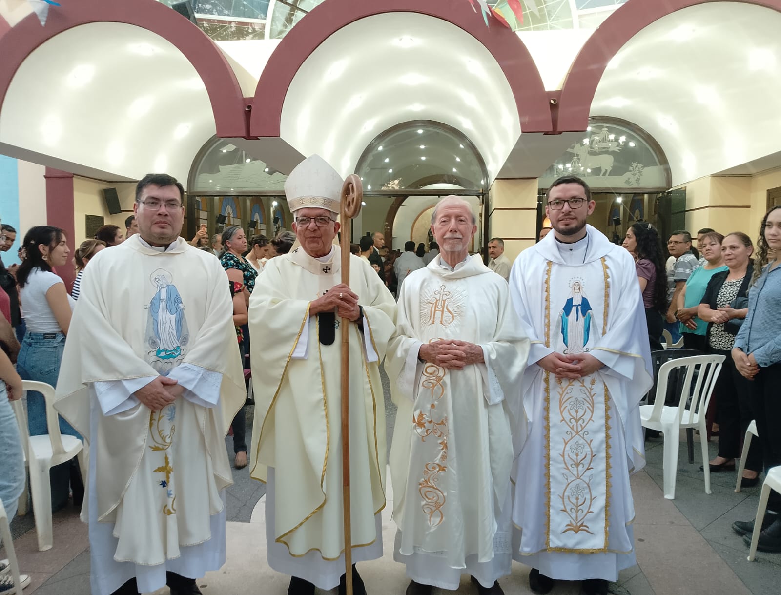 Que María, Nuestra Señora de la Medalla Milagrosa, derrame sobre nosotros las gracias que brotan de sus manos y que ella misma mostró a santa Catalina: la gracia de la paz, de la conversión, de la protección materna y de la esperanza renovada. Le pedimos que bendiga a cada familia aquí presente, a nuestra comunidad parroquial, a nuestra Arquidiócesis y a toda nuestra querida patria paraguaya. Bajo su amparo nos acogemos, confiando en su cuidado maternal. Ella, que es la Virgen de los Milagros de Fernando de la Mora, la Virgen de Caacupé, y la Madre de todo el Paraguay, nos acompañe, nos fortalezca y nos cubra con su manto.